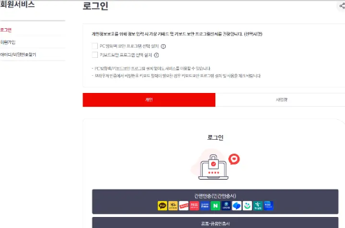 3. 본인 인증: '간편 인증(휴대폰 인증 등)' 또는 '공인인증서'로 로그인합니다.