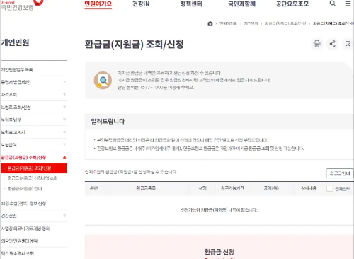 2. 환급금 조회/신청 버튼 클릭: 메인 페이지에서 ‘환급금 조회/신청’ 메뉴를 클릭합니다.