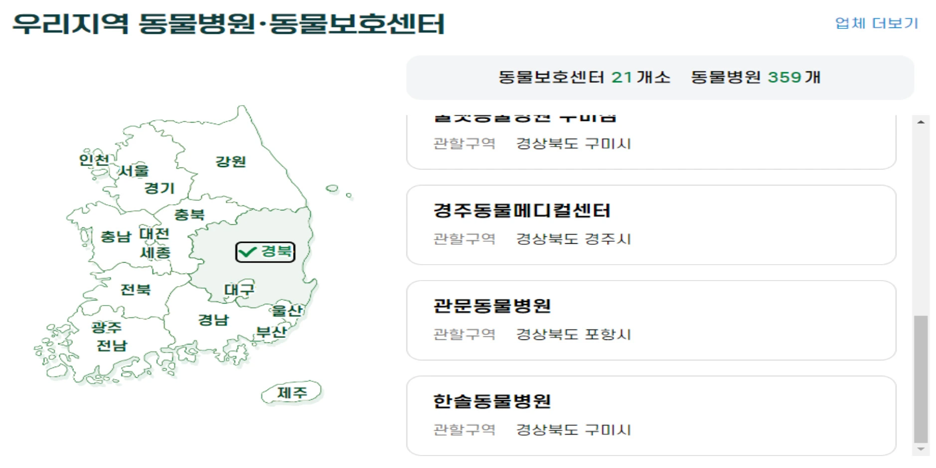 동물병원 운영 정보는 두 웹사이트의 첫 화면 상단에 위치한 안내창을 클릭한 후, 원하는 지역을 선택하면 쉽게 확인할 수 있습니다. 이 정보를 통해 근처에서 운영 중인 동물병원을 찾아볼 수 있으며, 필요한 경우 즉시 진료를 받을 수 있습니다.